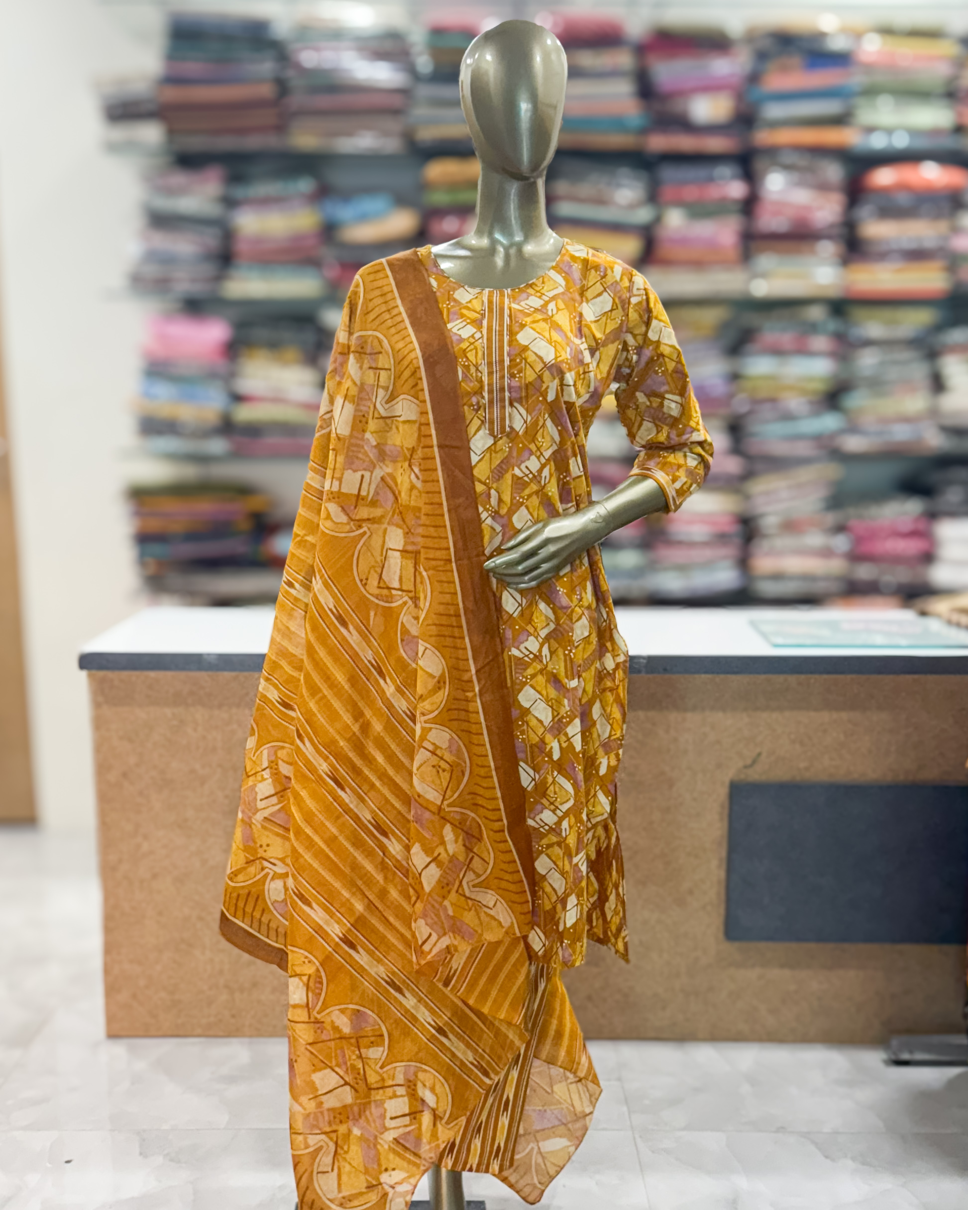 Completing the look is a beautifully printed dupatta that adds color and charm to the ensemble. Lightweight and easy to wear, this cotton salwar set is perfect for office wear, shopping, travel, and everyday use. Pair it with simple accessories for a polished yet comfortable ethnic look.