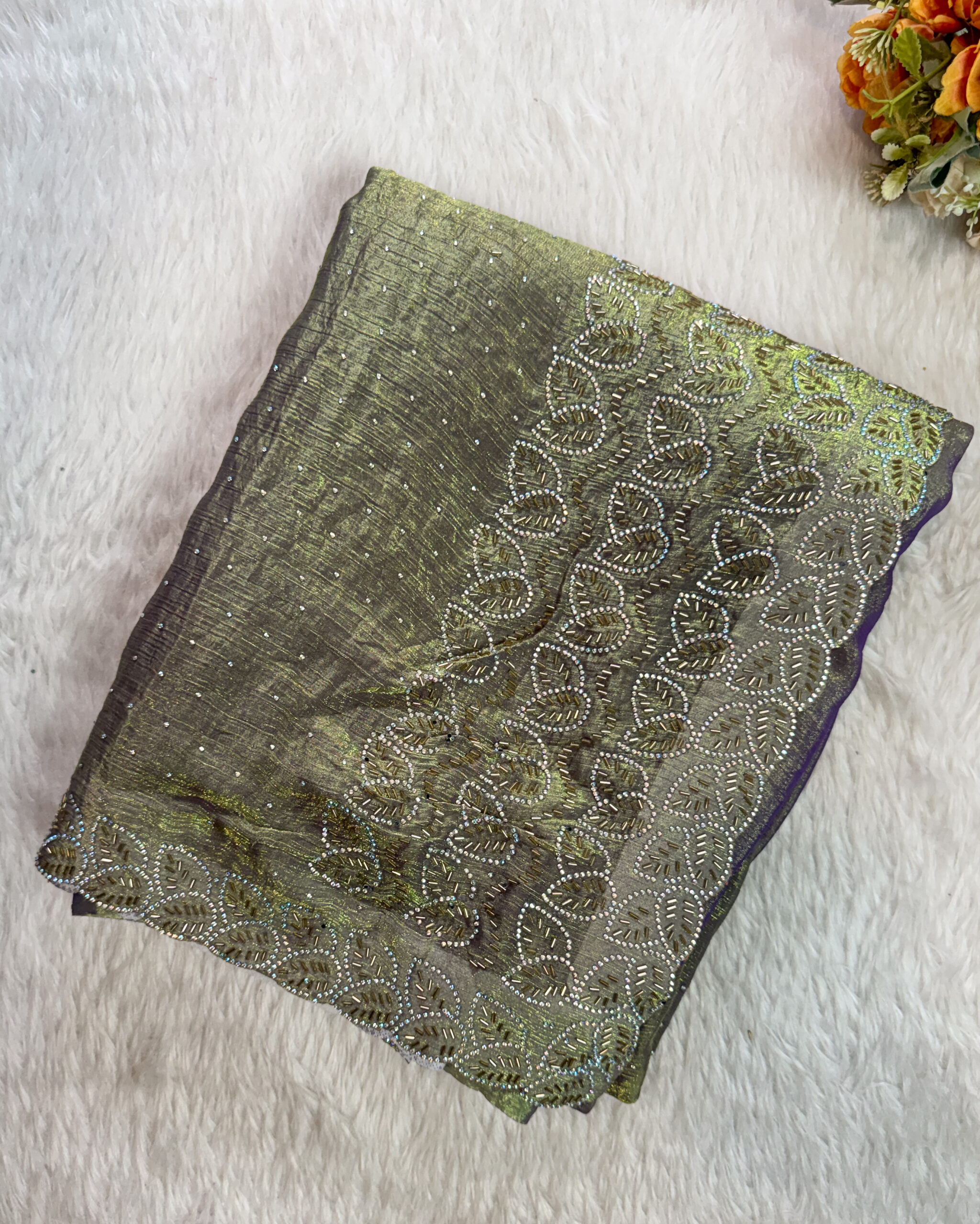 Elevate your festive wardrobe with this stunning party wear saree, crafted to bring elegance and charm to every occasion. This designer party wear saree features a beautiful double shaded effect that creates a graceful and eye-catching look. Delicate sequins line patterns add refined shimmer across the saree, making it perfect for evening events and celebrations. The golden thread border enhances the overall richness and gives the saree a luxurious ethnic finish.