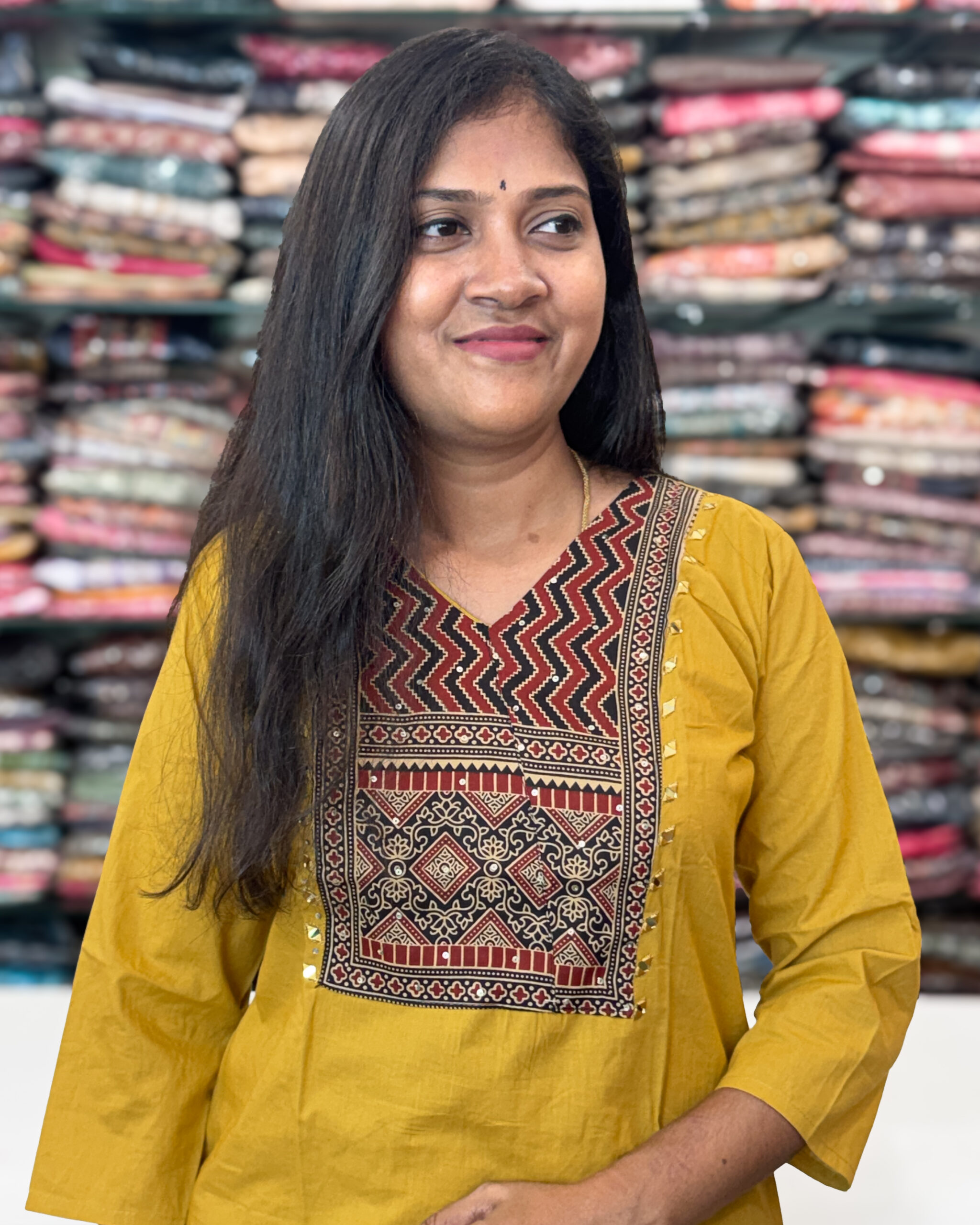 • Stylish V-neck with mirror work and sequins on yoke