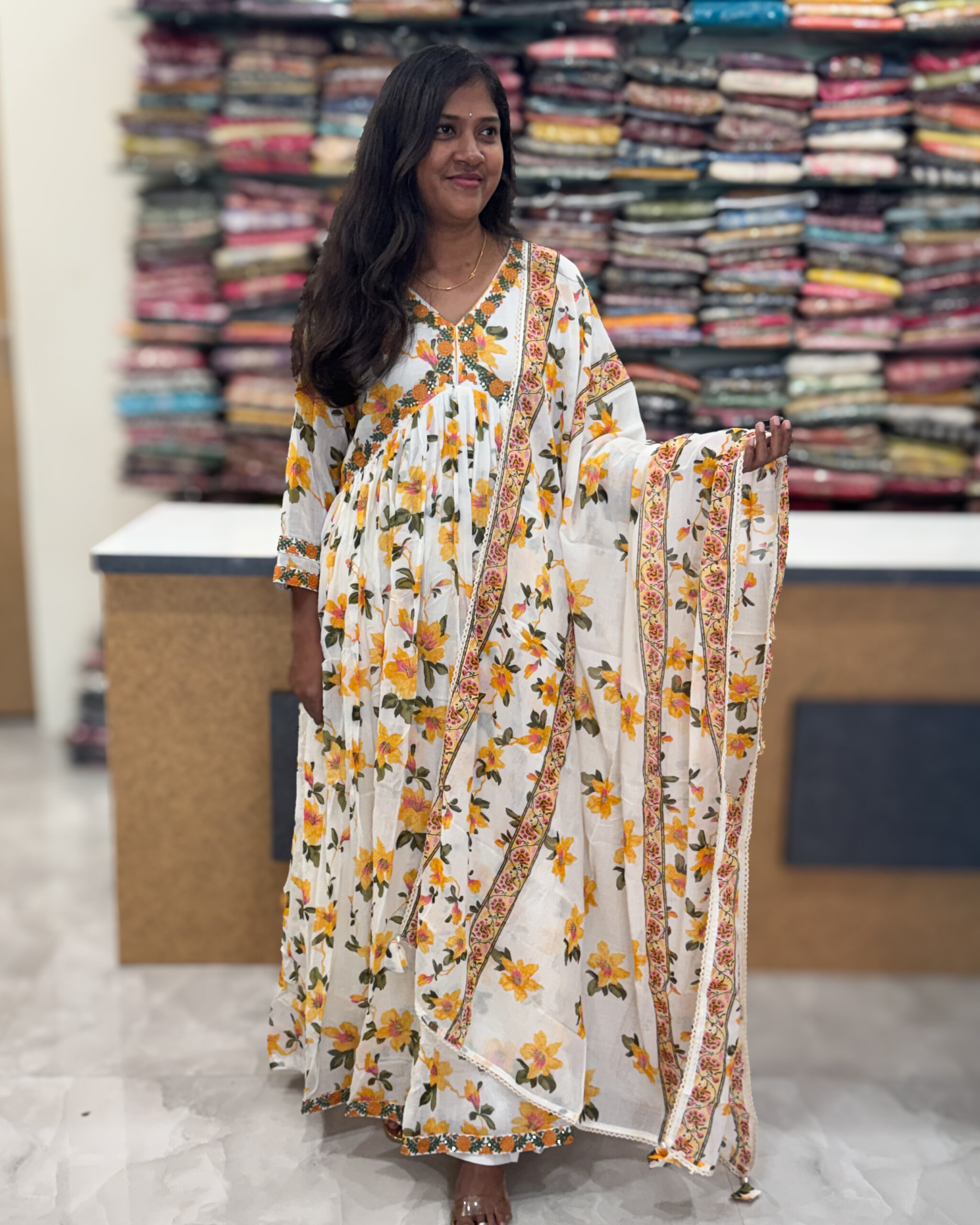 - Elegant floral print on kurta and dupatta